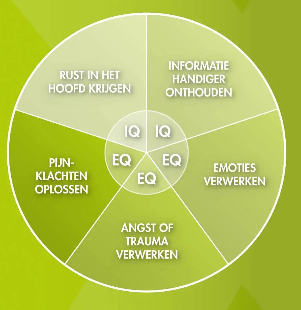 Leerproblemen, Dyslexie, dyscalculie, concentratieproblemen, Hoofdpijn, Oorsuizen, Faalangst, Trauma, Angsten, Gevoel van eenzaamheid, Slaapproblemen, Verslaving en Eetstoornissen
